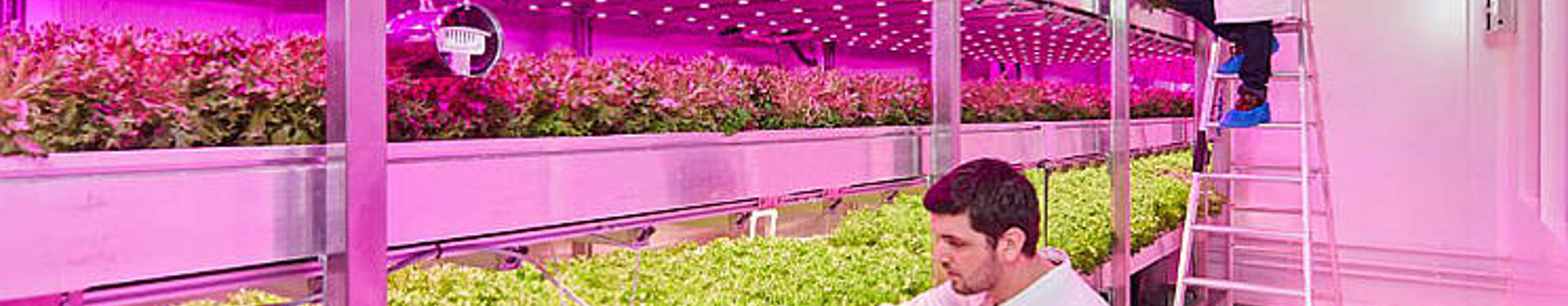 Vertical farming is het kweken van voedsel in gestapelde kweeklagen, in een volledig gecontroleerde omgeving. Licht, energie en water worden aangestuurd om zo efficiënt en duurzaam mogelijk te kweken, zonder invloeden van buitenaf. Hierdoor kan op iedere mogelijke locatie indoor gekweekt worden, zoals bijvoorbeeld in een fabriekshal of in een kantoorpand.
