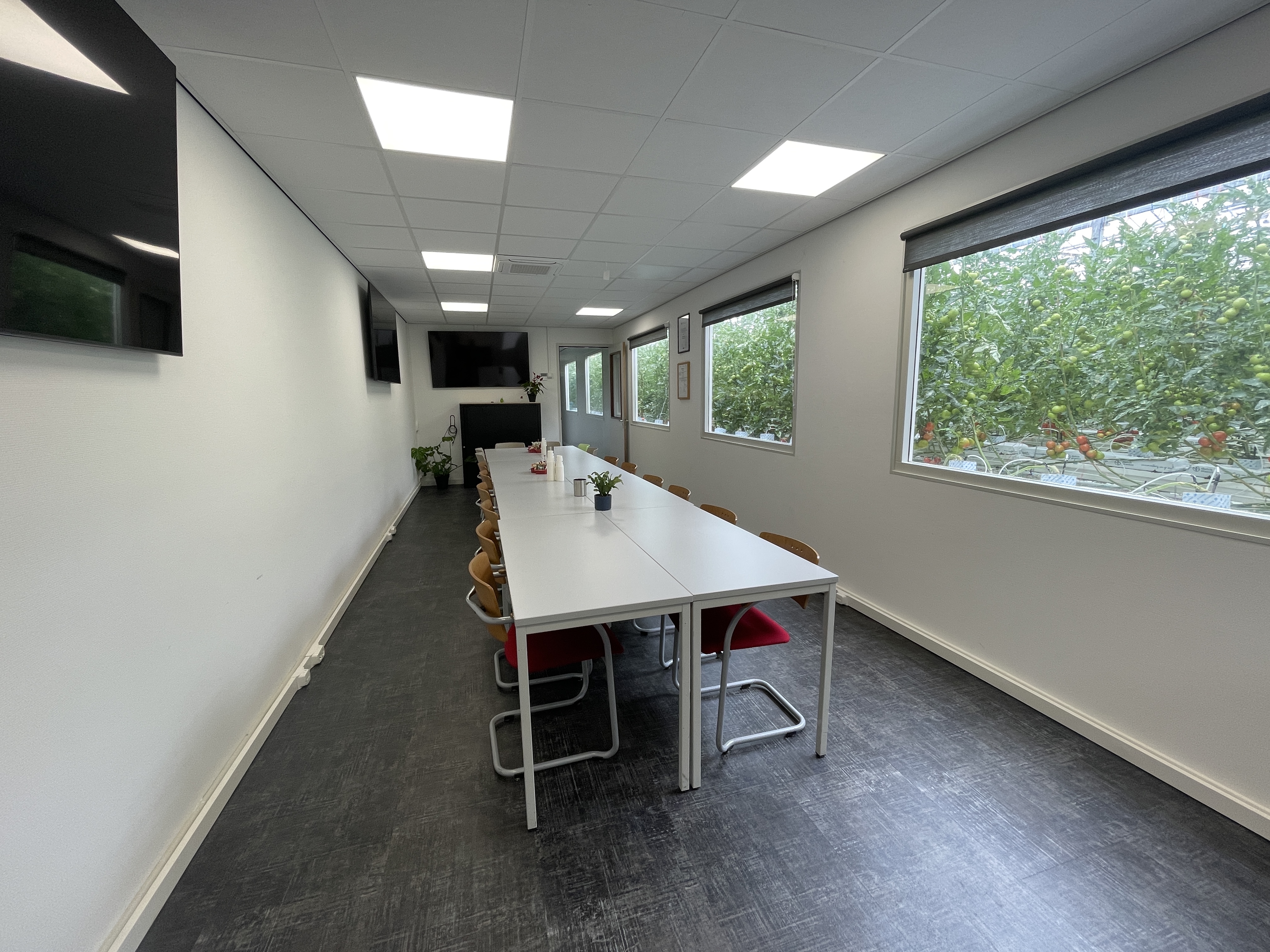 Meetingroom: Intieme vergaderruimte met uniek uitzicht op de tomatenplanten